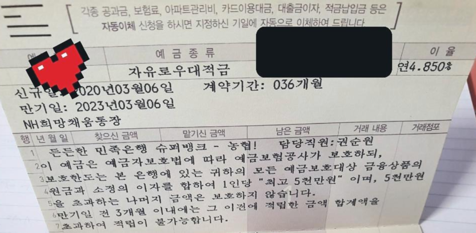 - 올해 2월에는 농협이 5%대 이율이었지만 제가 가입당시 4.85%로 떨어졌고 현재는 4.45%로 더 인하되었으니 이율변동이 있을 수 있어요.