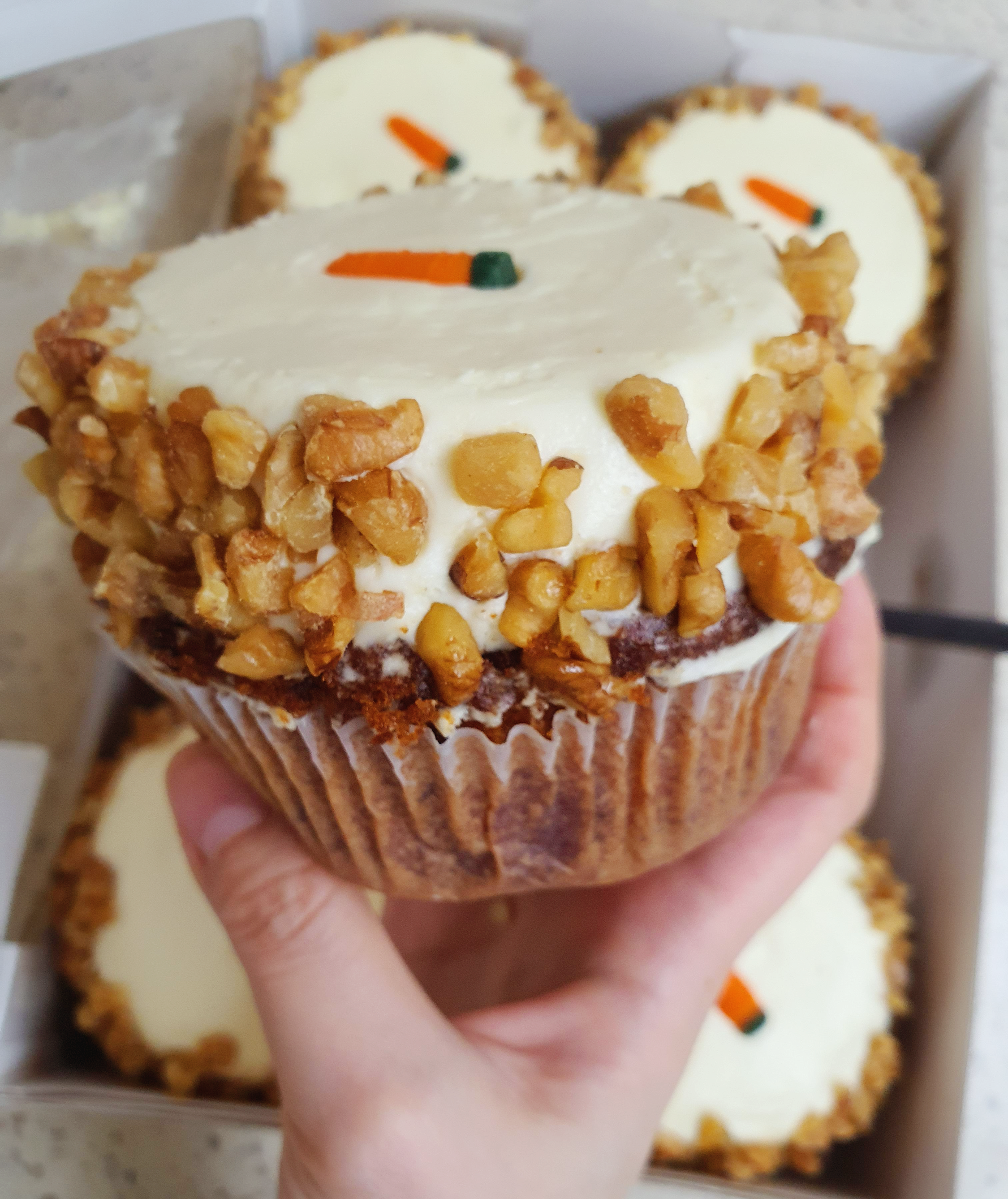 어른 손바닥정도의 크기로 보통의 컵케익 두배정도는 되는 크기에 크림도 묵직하고 다진 호두를 잔뜩 붙여놔서 한입 먹으면 크림맛도 호두맛도 풍부해요. 역시 애매한 가게에서 살바엔 재료를 아낌없이 퍼부은 코코 제품이 낫습니다.