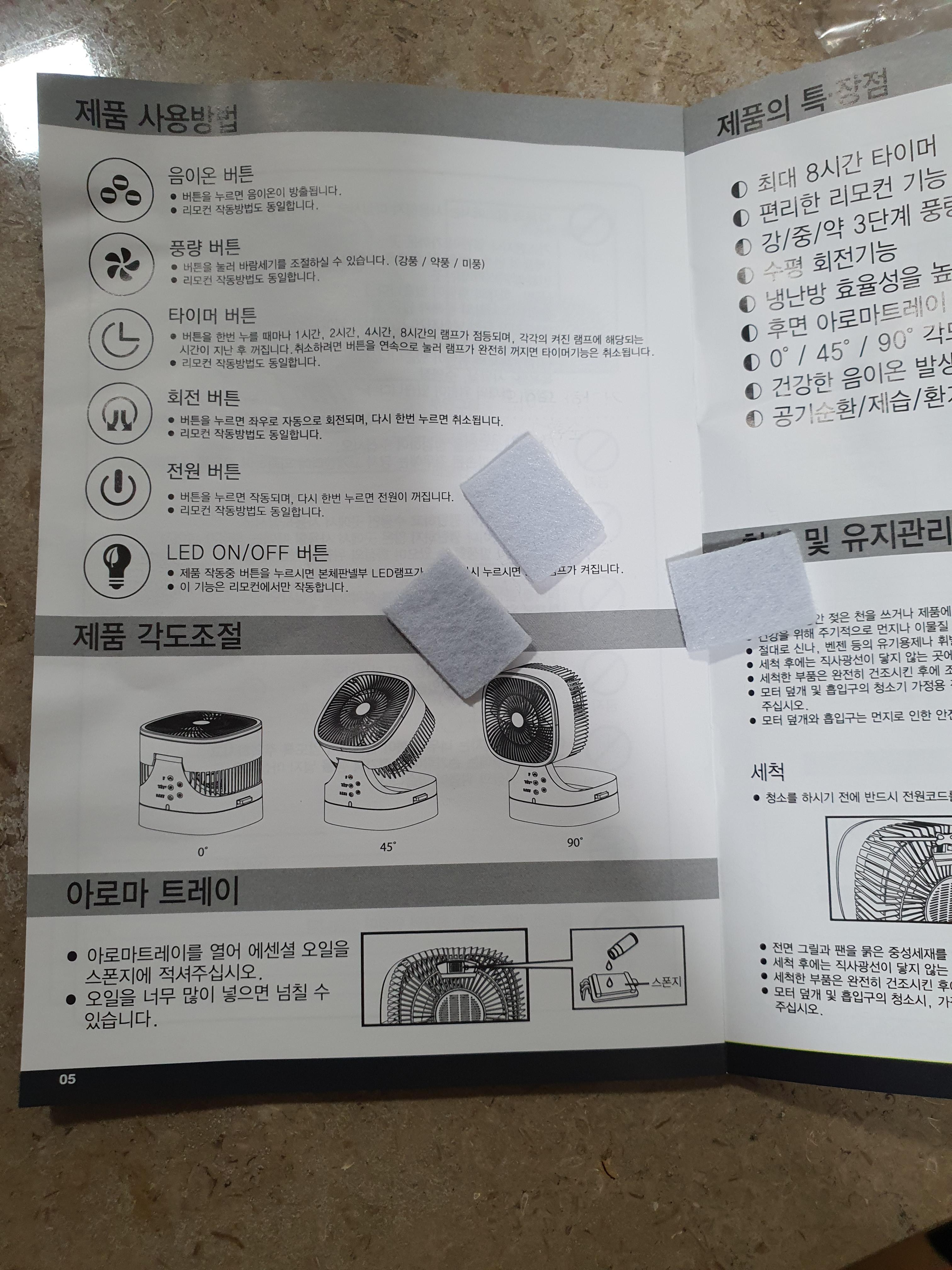 조그마한 사각 부직포가 몇개 들어있길래 바닥면에 부착하는건가 했더니 아로마트레이가 있네요. 사용중인 유스트 아로마오일을 톡톡 뿌려서 돌리면 공기순환과 향기가 같이 되겠..지만 잘 쓰지는 않을 것 같아요. 귀찮아요 🤔