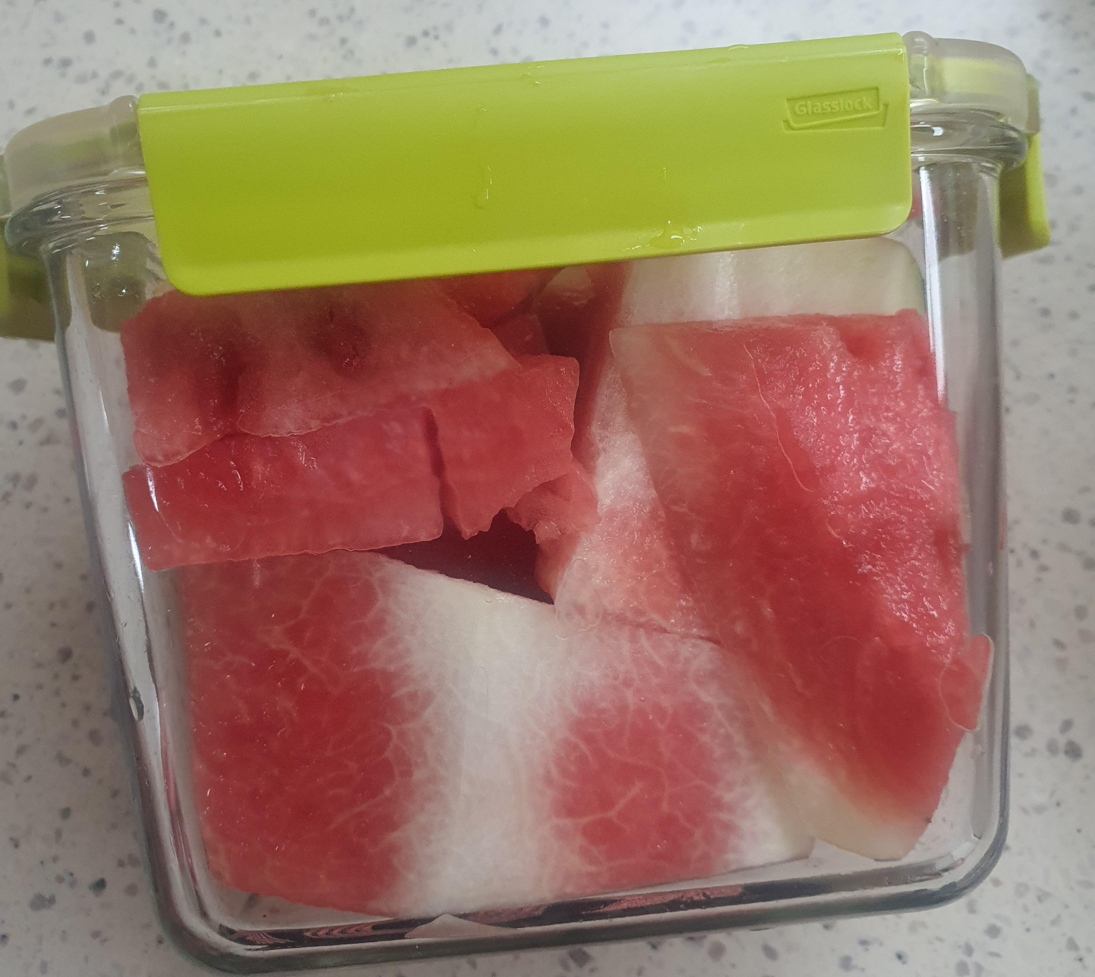 저는 달콤한 부분만 썰어서 담고 하단 1~2cm 정도부터 하얀부분까지는 대충 썰어 따로 통에 담아둡니다.