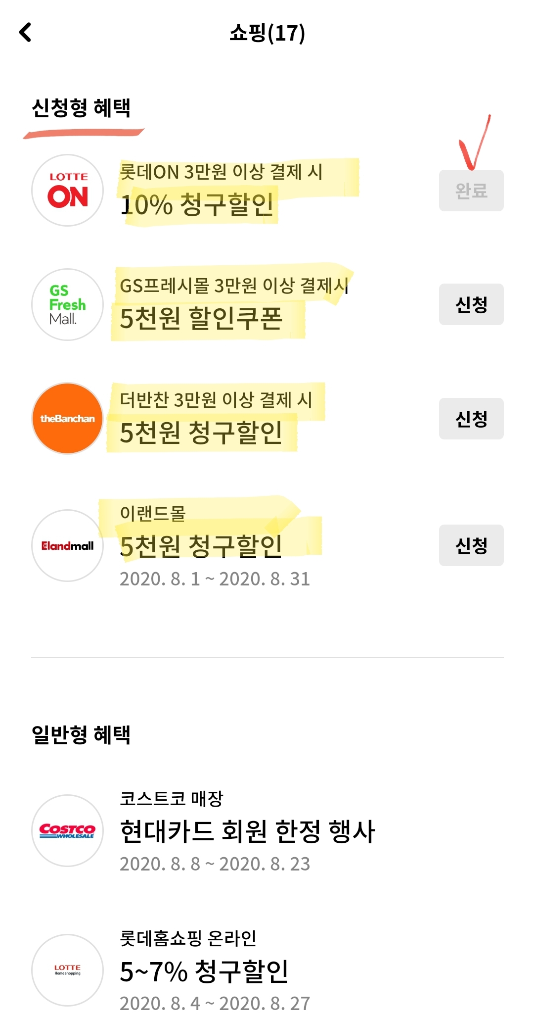 "신청"버튼 눌러야 제공되는 할인 혜택