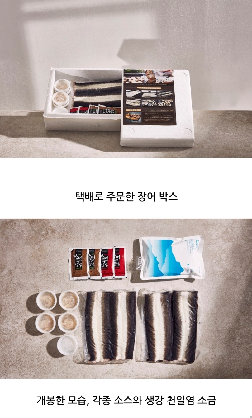 제가 주문한 곳은 네이버 스토어팜-미스터장어인데, 전남 영암군에 있는 둔재양만장이라네요. 가본 적 없는 곳이지만 상세페이지에서 양식장 전경과 생산과정을 자세히 소개하고 있고 운영하는 부자의 모습을 사진으로 소개하는데 어색한 부자의 모습이 웃음도 나고 비교적 신뢰도 가서 주문해봤어요.