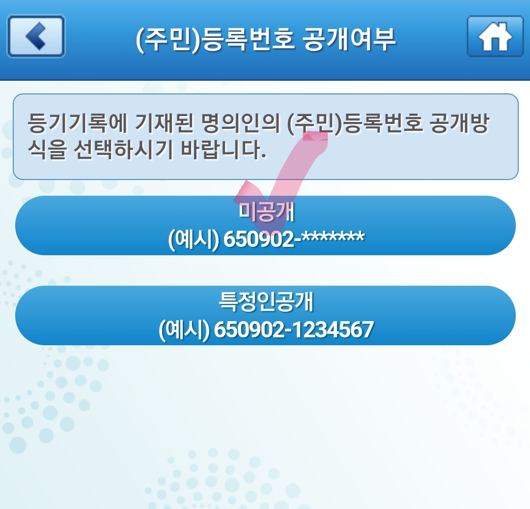 6. 주민등록번호 '미공개' 선택 : 특정인공개로 선택했더니 주민등록번호 입력란이 나오더라구요.