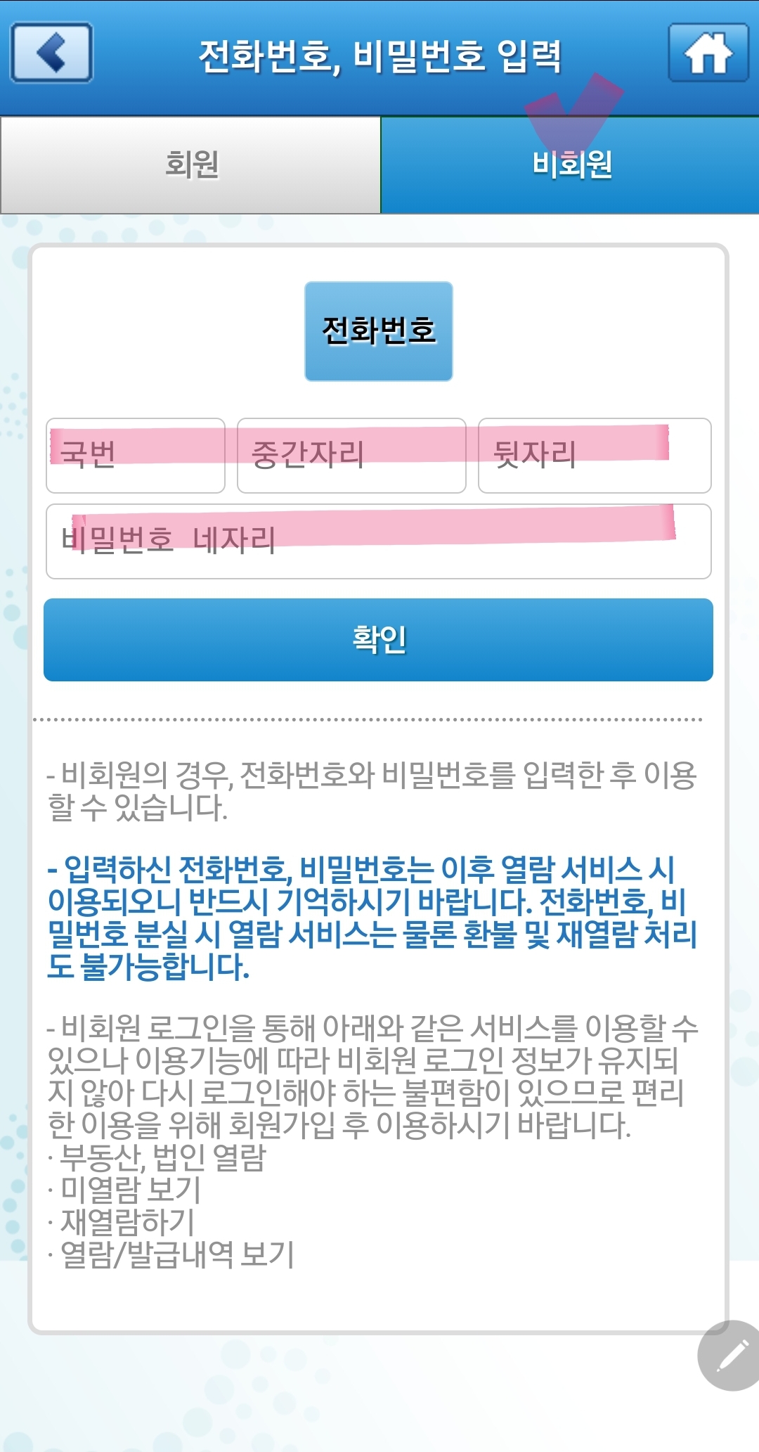 2. 회원 / 비회원 가입 : 비회원 가입시 폰번호와 비밀번호만 입력