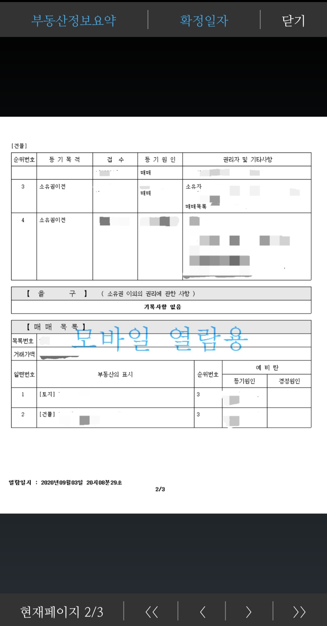 갑구 : 소유자 이름 주민등록번호 정도는 신분증으로 확인