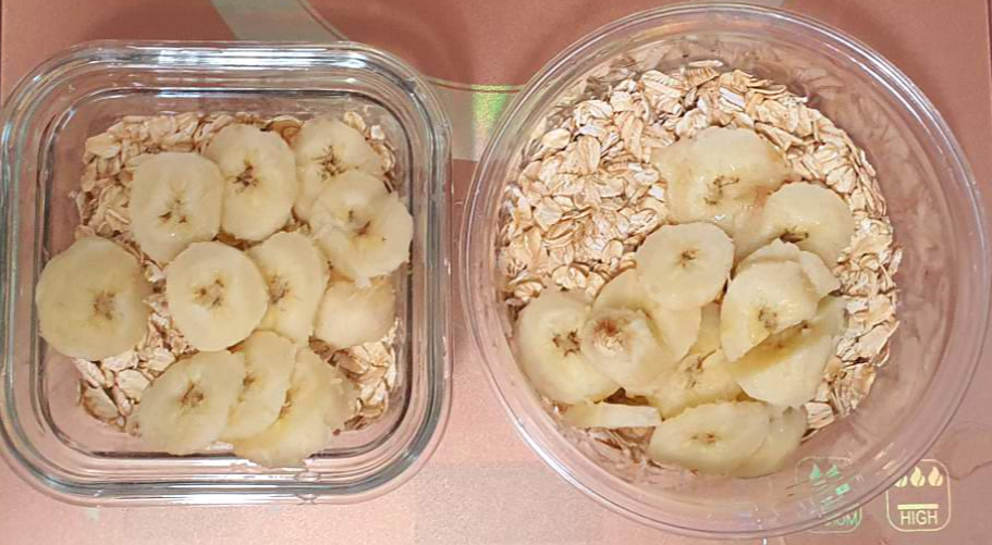 오늘은 바나나를 넣고싶어서 오트밀에 바나나를 넣어 준비해뒀어요.