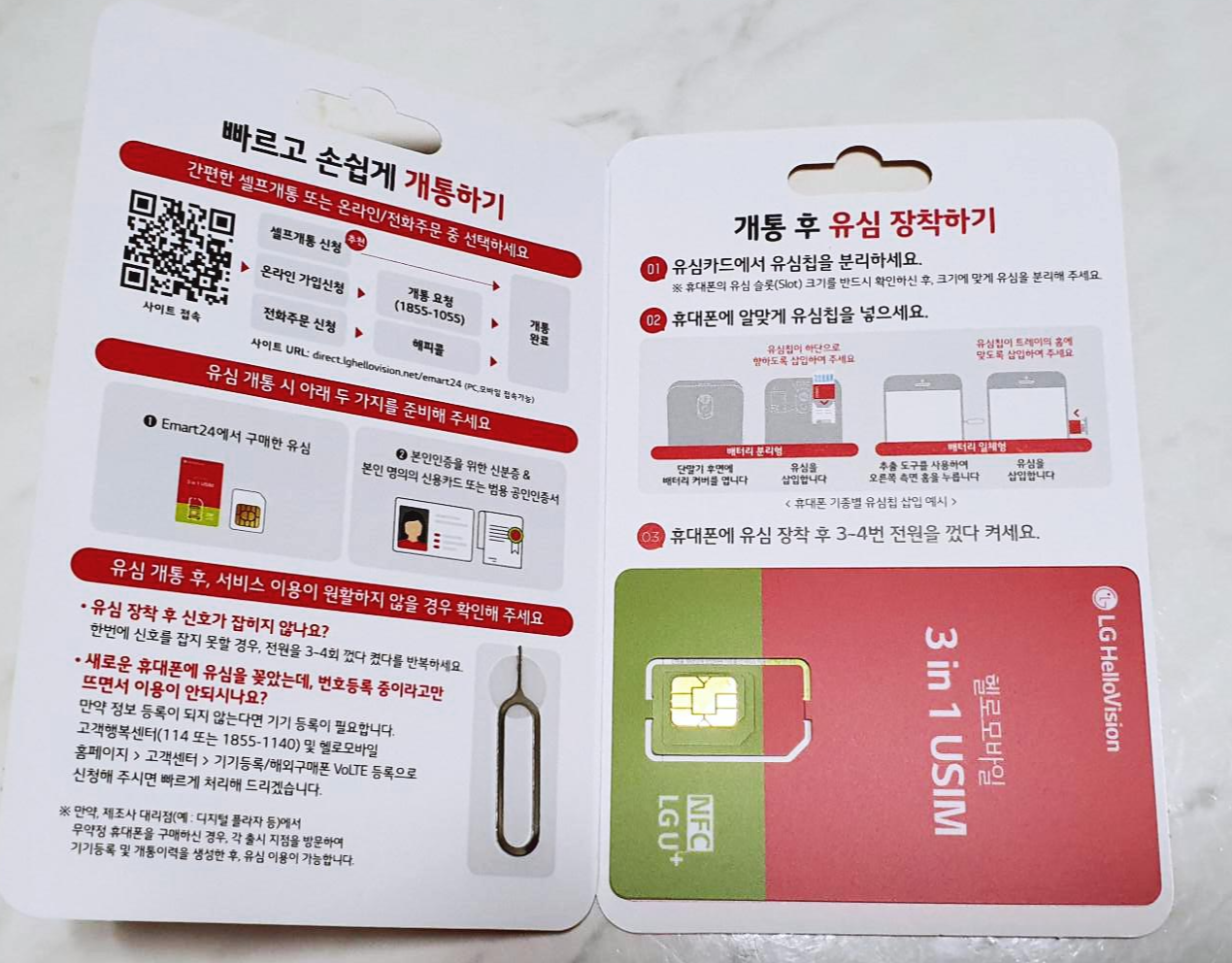 편의점에서 유심칩 구매 - 헬로모바일에서 셀프개통 작성 - 번호(단말기)인증 - 접수 - 유심변경