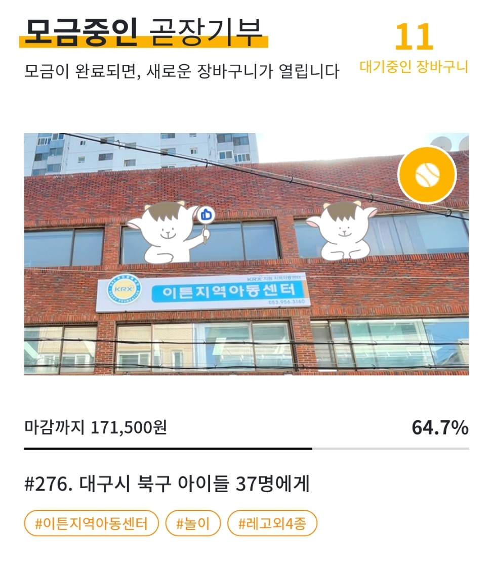 이전 글에서 일대일 아동후원을 소개했다면 이번에는 필요물품이 전달되는 "곧장기부"에 대해 소개해볼게요.