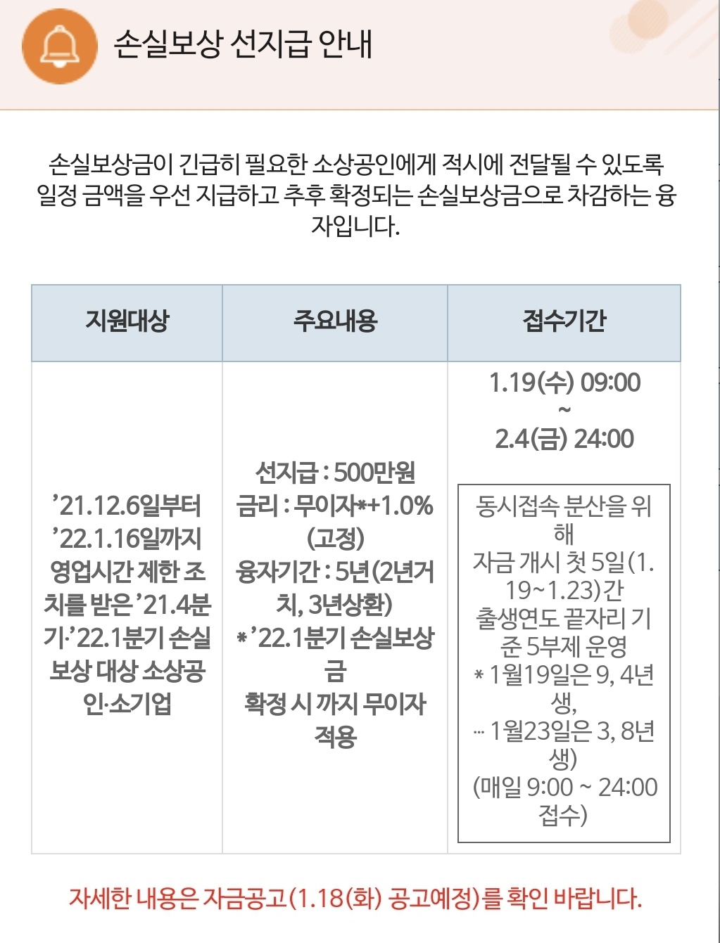 22년 1월 소상공인 손실보상 500만원 선지급 일정이 나왔습니다.