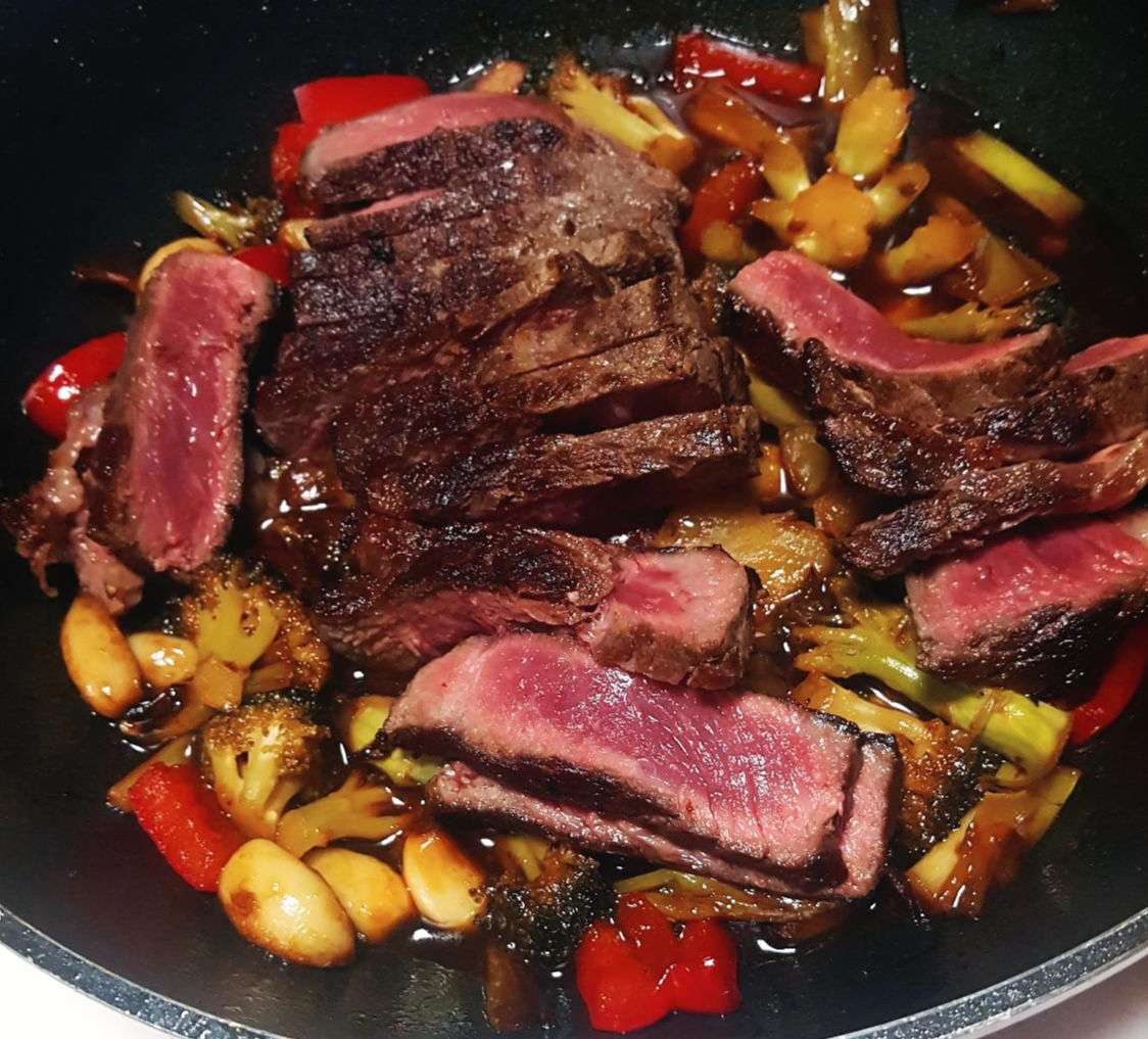 오일쳐덕쳐덕 밑간후추후추 - 강불에 취익~ - 중불에 겉면 태우다시피 빠삭하게 구우면 미디움스테이크 완성!