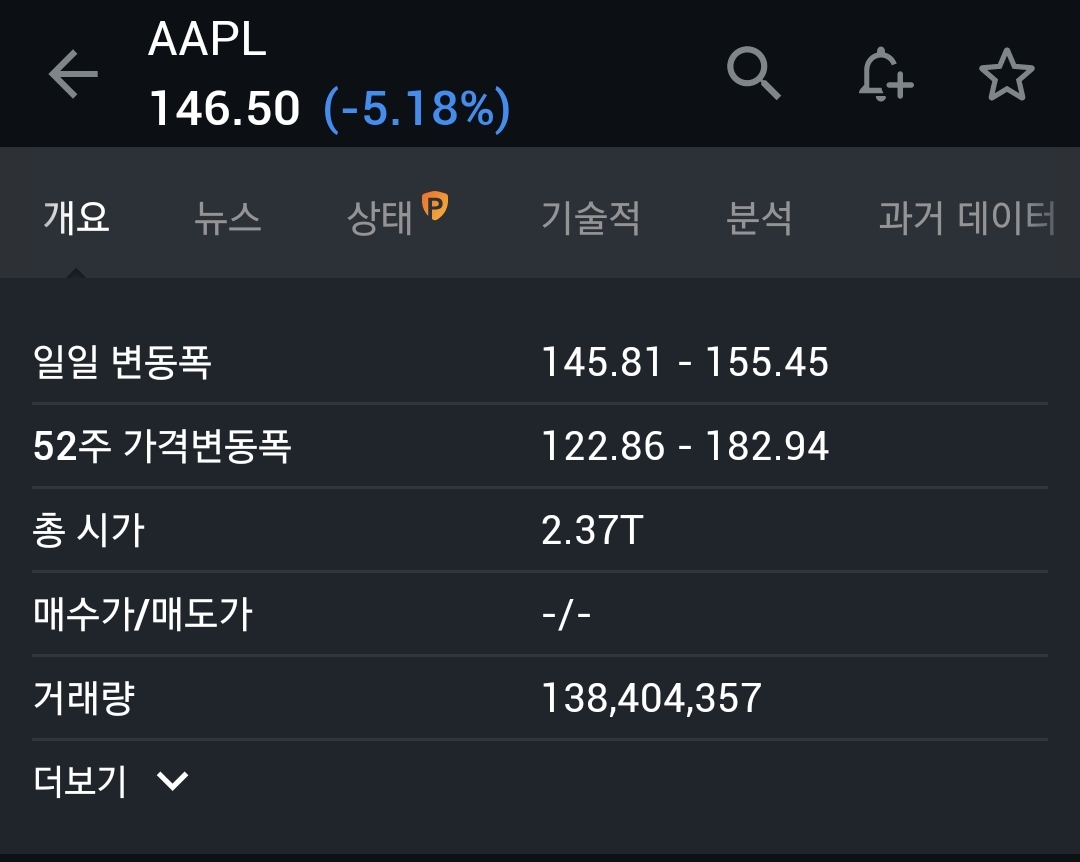 위의 사진처럼 인베스팅기준 애플시총은 $ 2.37T($2,370,000,000,000) 입니다.