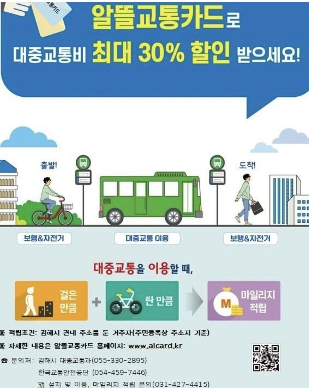 문의처 : 김해시 대중교통과 (055-330-2895), 한국교통안전공단 (054-459-7446), 앱설치및마일리지적립 (031-427-4415)