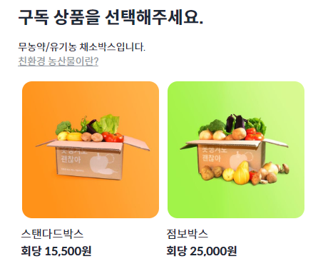 매주 / 격주 이렇게 주문할 수 있는데 저희 부부는 야채를 많이 먹어서 매주 주문해봤어요.