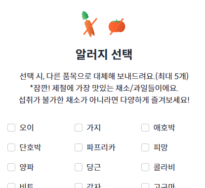 알러지가 있거나 먹기싫은 야채는 미리 체크해두면 되더라구요.